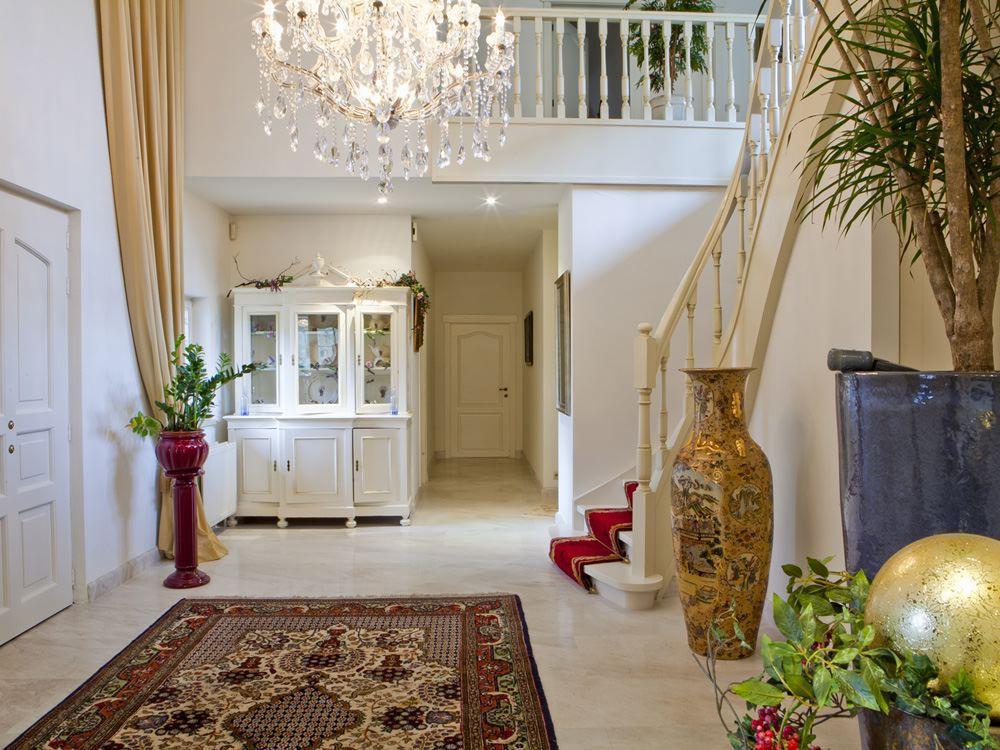 De ligging van deze charmante villa is buitengewoon uniek te noemen. De villa is heerlijk vrij gelegen in een doodlopende straat aan de bossen, waardoor rust, ruimte en privacy een gegeven is. Dichtbij het centrum van Oud- Turnhout en de autosnelweg E34 en toch in alle rust en stilte kunnen wonen.Deze charmante villa bespeelt al uw zintuigen. Gelijkvloers: Via een automatische poort met een welgevormde oprijlaan bereikt u deze charmante villa gelegen op een royaal perceel van ca.4200m². De royale hal met trappenpartij en open vide beschikt over een gastentoilet met de nodige ingebouwde muziekinstallatie en een vestiaire. Via dubbele deuren betreedt u de schitterende living op witte Italiaanse marmer met imposante gashaard en aansluitend de eetkamer en een bureelhoek. Vanuit de woonkamer heeft u een buitengewoon fraai zicht over de nieuw aangelegde tuin met vijverpartij. De villa is voorzien van alle luxe en pracht, die we mogen verwachten van een eigendom van dit kaliber. Zelfs vanuit de Siematic keuken bent u direct betrokken bij het sfeervolle eetgedeelte en de woonkamer. De luxueuze keuken beschikt over de nodige moderne inbouwapparatuur, waaronder een ingebouwd espressomachine, inductie vuur, combi-oven, etc. Aan de keuken ligt zeer praktisch de wasruimte met ingebouwde kasten en ruimte voor een grote diepvriezer of Amerikaanse ijskast. Op het gelijkvloers hebben we ook een grote slaapkamer met eigen dressing en luxe badkamer, bestaande uit een marmeren vloer , twee wastafels, een douche en ligbad. Eerste verdieping: De met lichtovergoten overloop met balkon aan de achterzijde van de villa geeft toegang tot de mastersuite met open badkamer, bestaande uit een jacuzziligbad met lichttherapie, stoomdouche met aromatherapie en muziekinstallatie, dubbele wastafel in Italiaanse marmer. De heerlijke romantische gashaard zorgt voor die extra gezellige sfeer in de royale slaapkamer. Er is ook nog een grote dressing voorzien, waar u al uw kleding en schoenen kan stockeren. Verder zijn er nog twee zeer ruime slaapkamers met elk hun eigen badkamer en balkon, waar je in de zomer heerlijk kan vertoeven met een glaasje wijn en een boek. De villa beschikt ook over een dubbele inpandige garage met automatische poort. De tuin is zeer verzorgd door de mooie verlichting en men heeft een beregeningssysteem aangelegd. Bijzonderheden: * Luxe afwerking * Topligging, rust en privacy. * Jaccuziligbad en stoomdouche * Gashaard in woonkamer en slaapkamer * Luxe mastersuite met dr