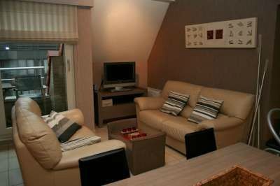 Prachtig duplex - centrum MiddelkerkePrachtig ingericht duplex appartement in recent gebouw - garage in gebouw - zeer luxueus gemeubeld en afgewerkt appartement. 4de verdieping: ruime living - volledig ingerichte, moderne keuken - grote berging - WC - trap naar 5de verdieping - ruim terras 1.25 x 2.50 m) 5de verdieping: één zeer ruime slaapkamer slaapgelegenheid voor 4 personen) 2.65 x 5.20m) - hall - zeer ruime badkamer - prijs appartement: 220.000 € prijs garage: 42.000 € gesloten box)